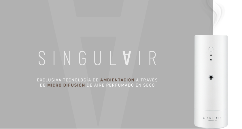 Para terminar, presentamos Singulair, una exclusiva tecnología de ambientación a través de micro difusión de aire perfumado en seco. Nuestro objetivo es ayudar a las marcas a desarrollar una personalidad propia en una serie de notas y matices de olor, porque todo lo que queda en el inconsciente, queda para siempre.