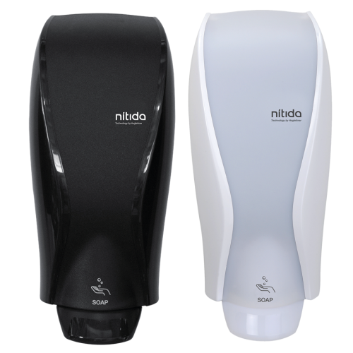 Un dispensador de jabón espuma que a través de un mecanismo de presión se puede operar con los dedos e incluso con los codos, con 3 niveles de regulación en la dosis obtenida y con productos que gozan de registro Ecolabel y/o de acción desinfectante.